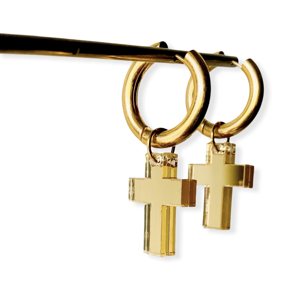 HomeJewelrySteel earrings Golden cross