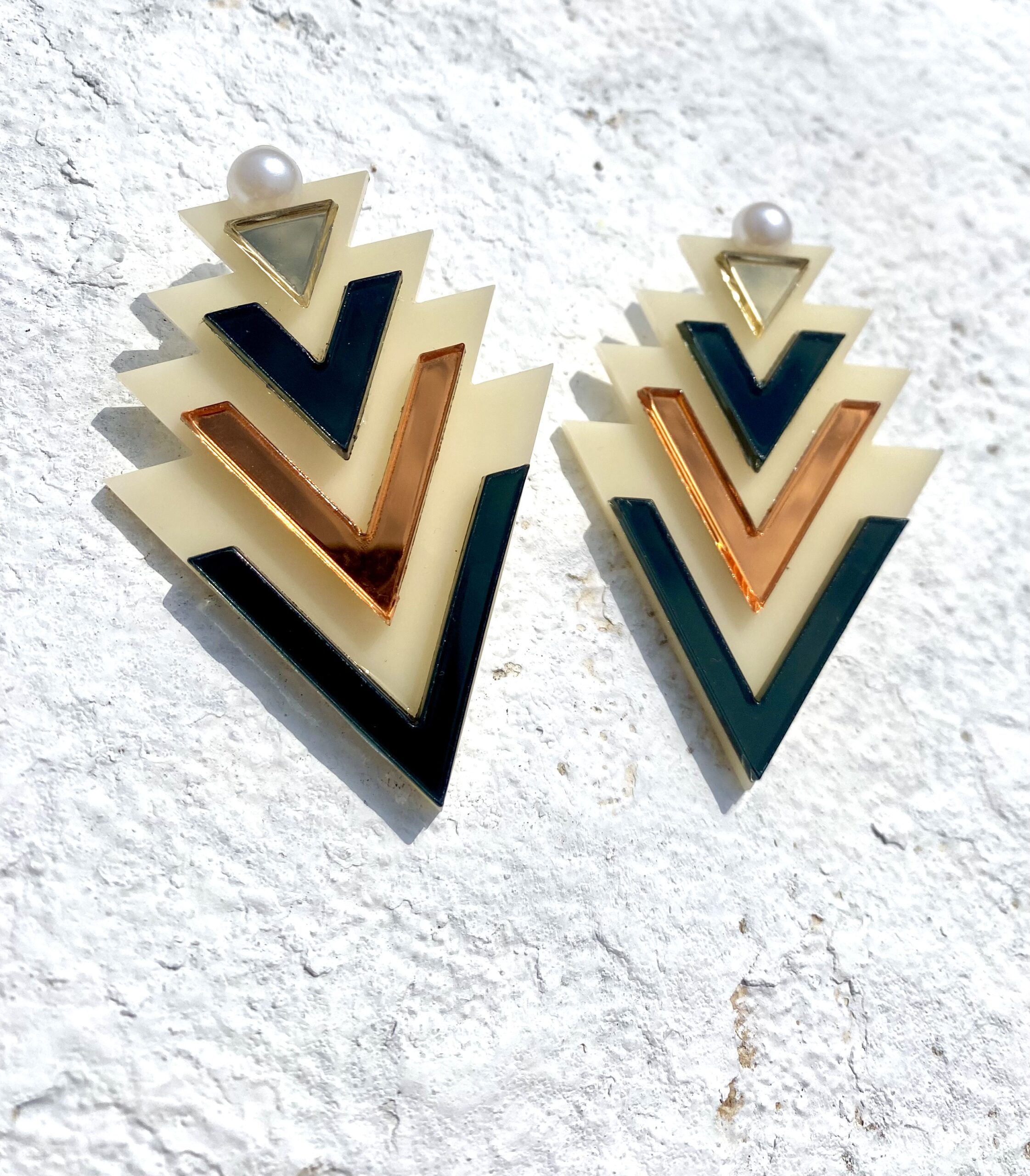 compination of plexiglass and acrylic mirrors with details is pearls.